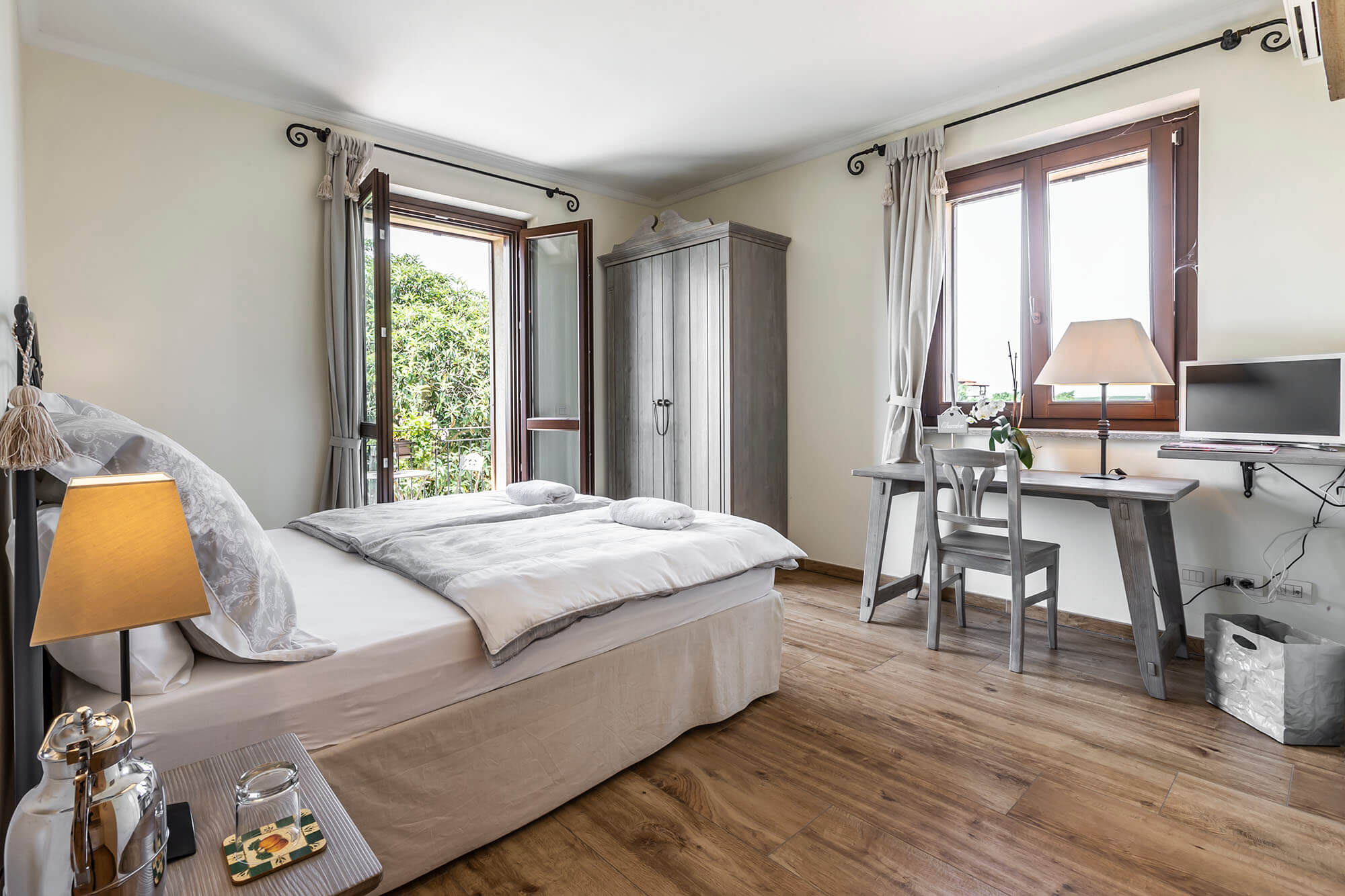 - Boutique Suites: Each guest room is a masterclass in Italian “charme,” featuring private bathrooms and sundrenched balconies with the most amazing views towards the Alps.
