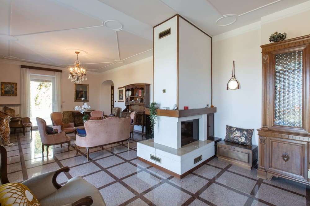At the edge of a lush private park of about 5,000 square metres, this stately villa rises in harmonious tiers, crowned by a graceful turret that watches over the hills and ruins below. Its noble 653 square metres unfold across three elegant levels plus the panoramic tower, offering 18 rooms where light, history, and modern comfort meet. The careful restoration honours original materials — stone, wood, and brick — while discreetly weaving in modern technologies that ensure energy efficiency and lasting ease of living.