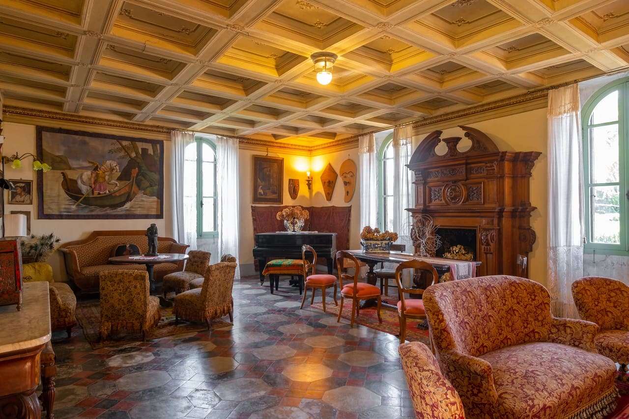 The ground floor offers ample space consisting of a lounge, dining room with fireplace, kitchen, a cosy library and a beautiful room used as a museum of collectibles, all in a magical and sophisticated historical atmosphere.