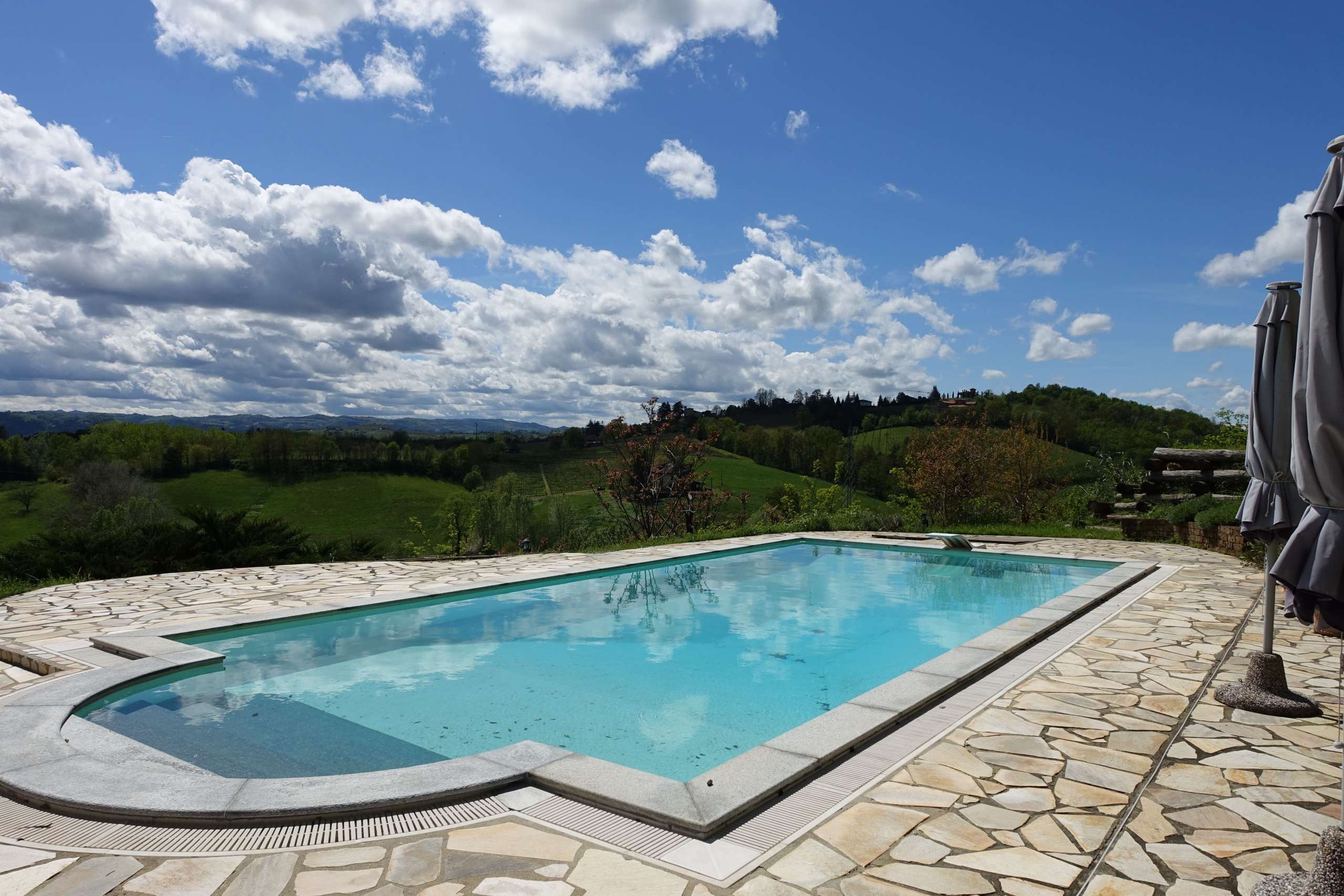 Spanning 192 sqm across two levels, the estate seamlessly blends historical character with contemporary living. Set on an expansive 19,000 sqm estate in the midst of UNESCO Heritage, this remarkable property includes a beautifully cultivated Barbera vineyard, potentially to be classified as NIZZA DOCG (approx. 7,000) blending nature and tradition in perfect harmony. The breathtaking 5×12 m saltwater infinity pool, with an impressive diving pit of 2.5-meter depth, commands a majestic panoramic view of the rolling hills of Vaglio Serra, creating an unparalleled setting for relaxation and leisure.