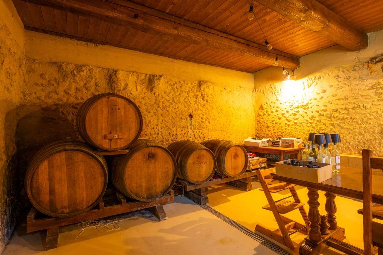 Around the house, a large wine store, garage, grotto, and storerooms provide ample flexibility — whether for guest facilities, private collections, or even event spaces. The wine store, with its striking yellow tanks, could become the setting for weddings, tastings, or celebrations.