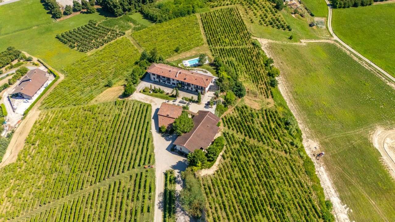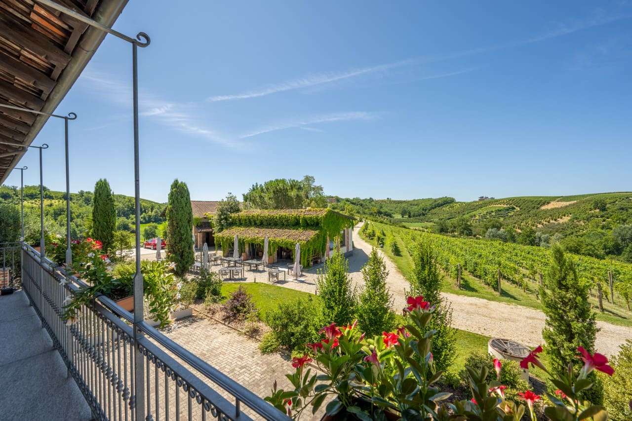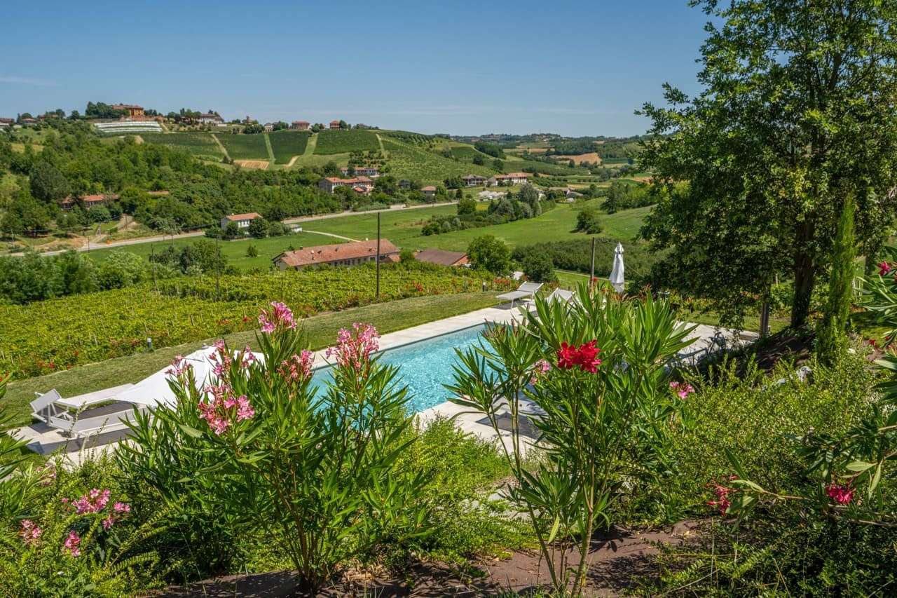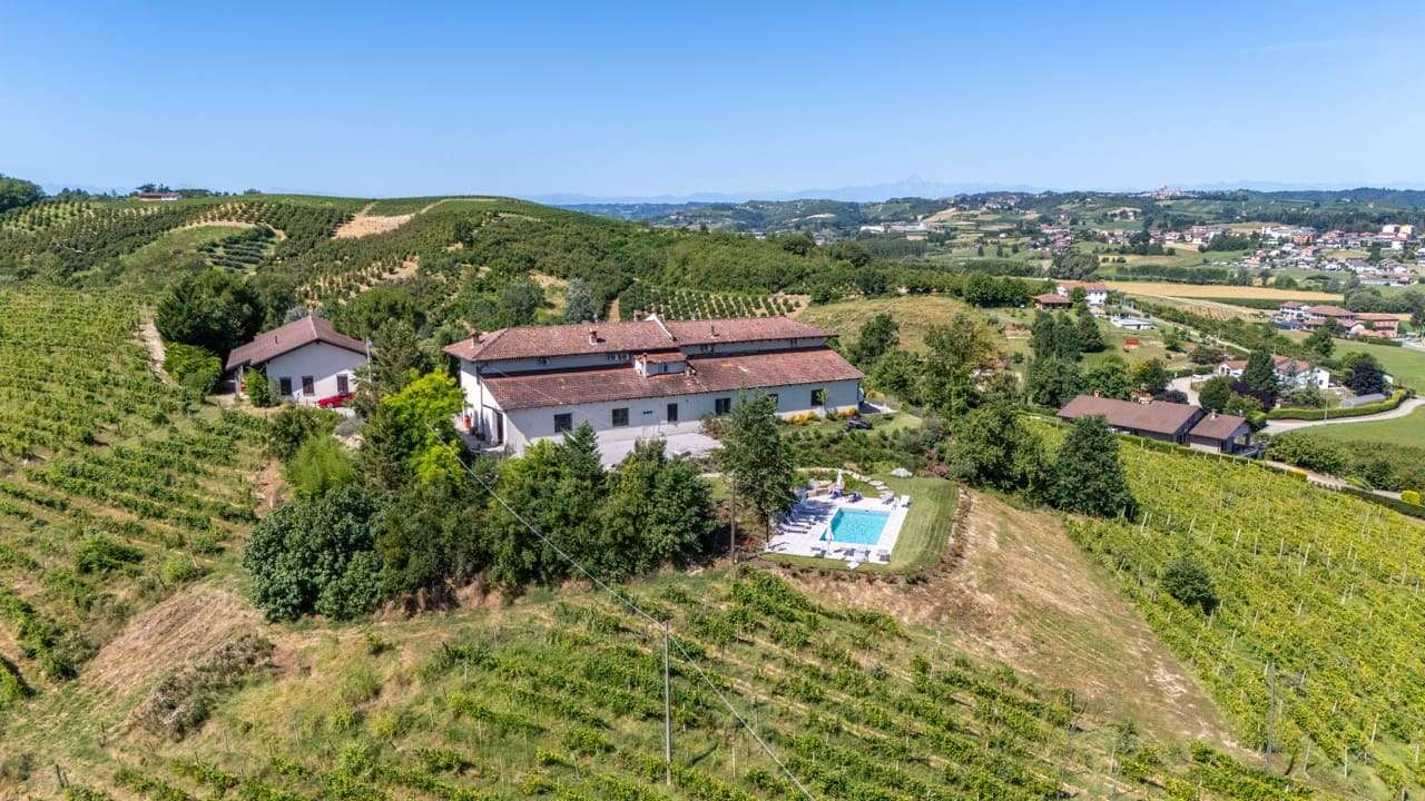 On the soft crest of a hill, embraced by rows of vineyards and gazing towards the snow-dusted Alps, stands this remarkable property near San Damiano d’Asti — a place where hospitality and tradition come together. From here, the view stretches across the valleys and over the rooftops of a lively town renowned for its wines, truffles, and vibrant local life.