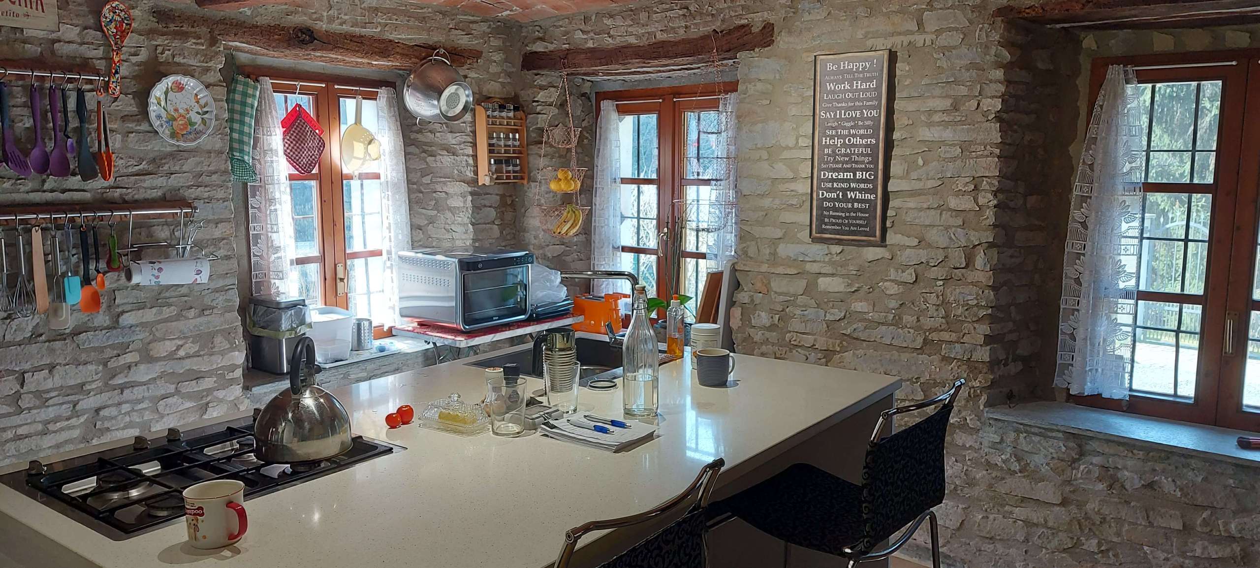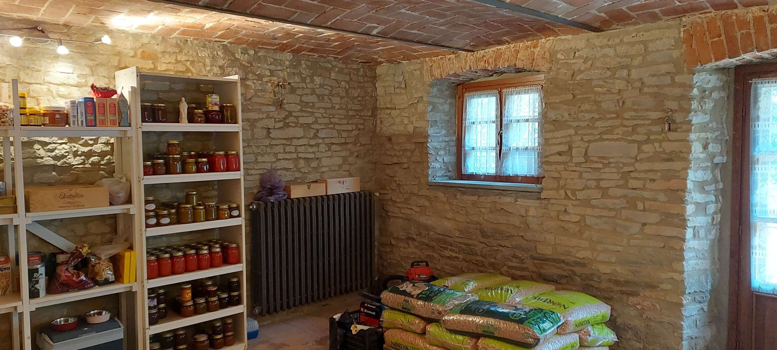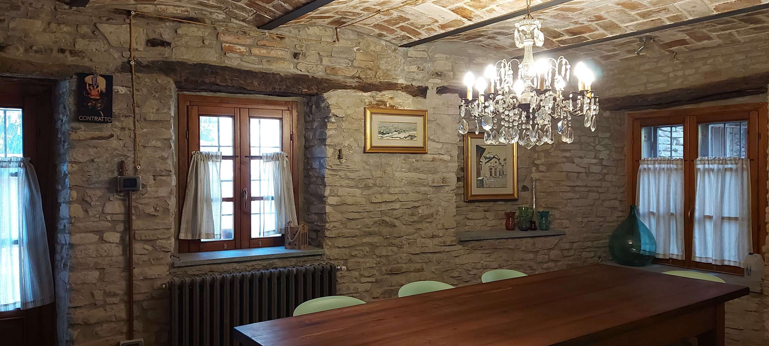 All 3 buildings have 1 metre thick stone walls and this feature of raw stone is visible both inside and out. The house and fienile have a mixture of ceilings made of traditional brick voltini and wooden beams.