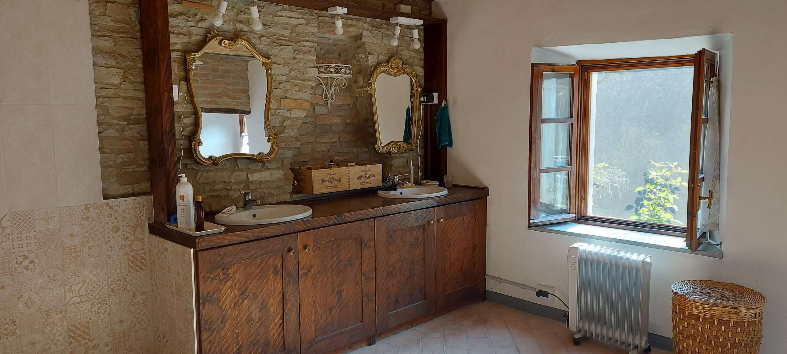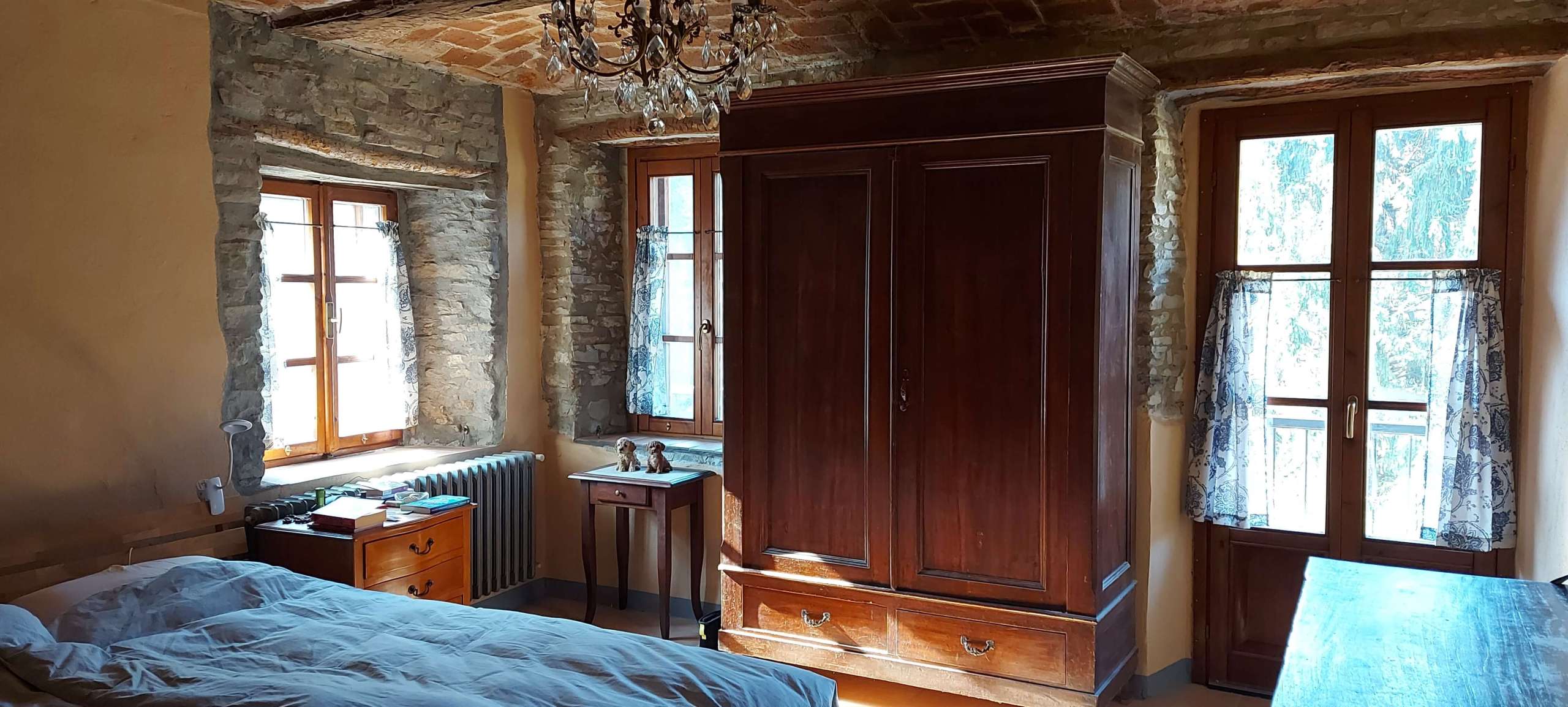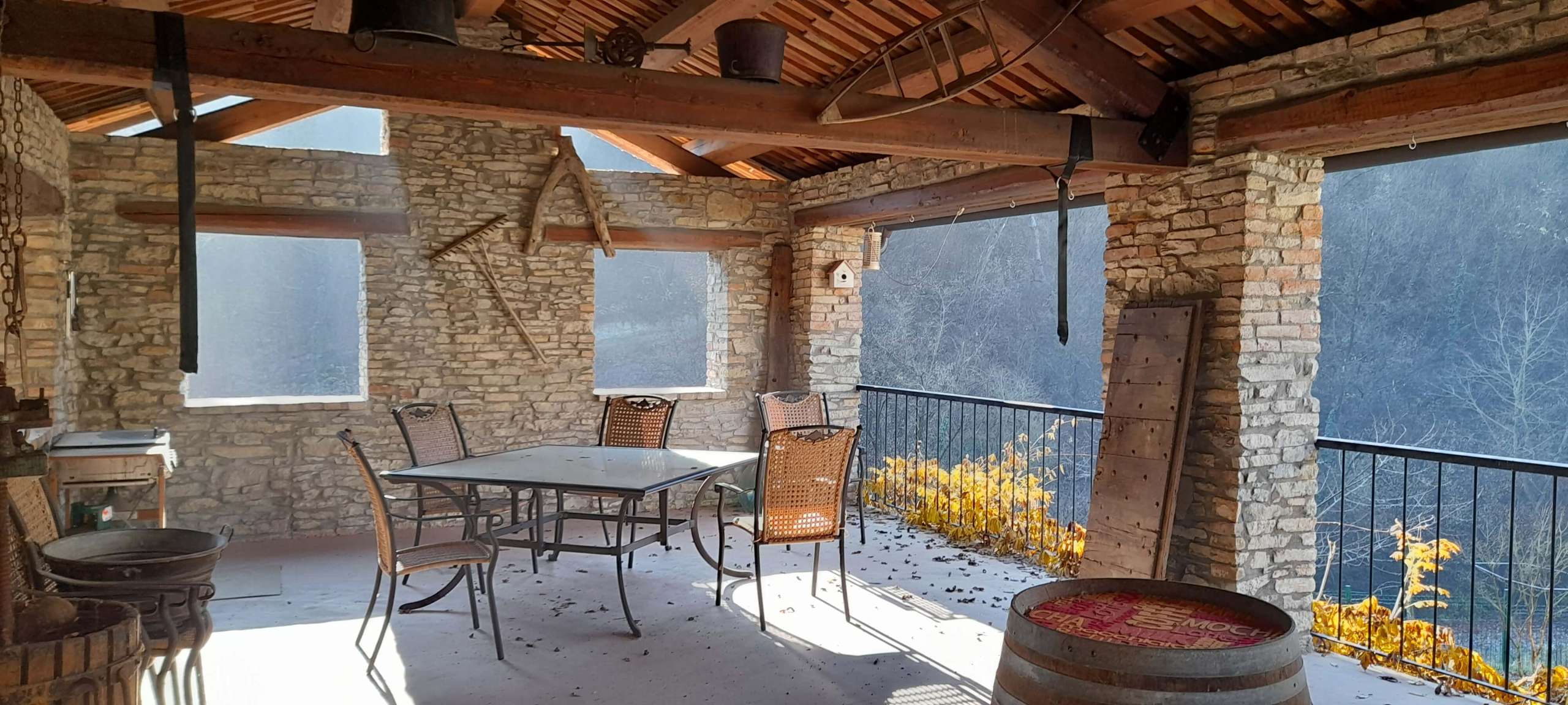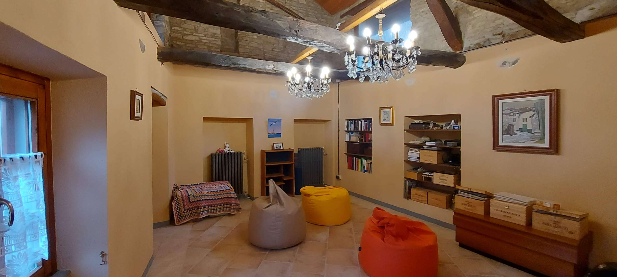 All 3 buildings have 1 metre thick stone walls and this feature of raw stone is visible both inside and out. The house and fienile have a mixture of ceilings made of traditional brick voltini and wooden beams.