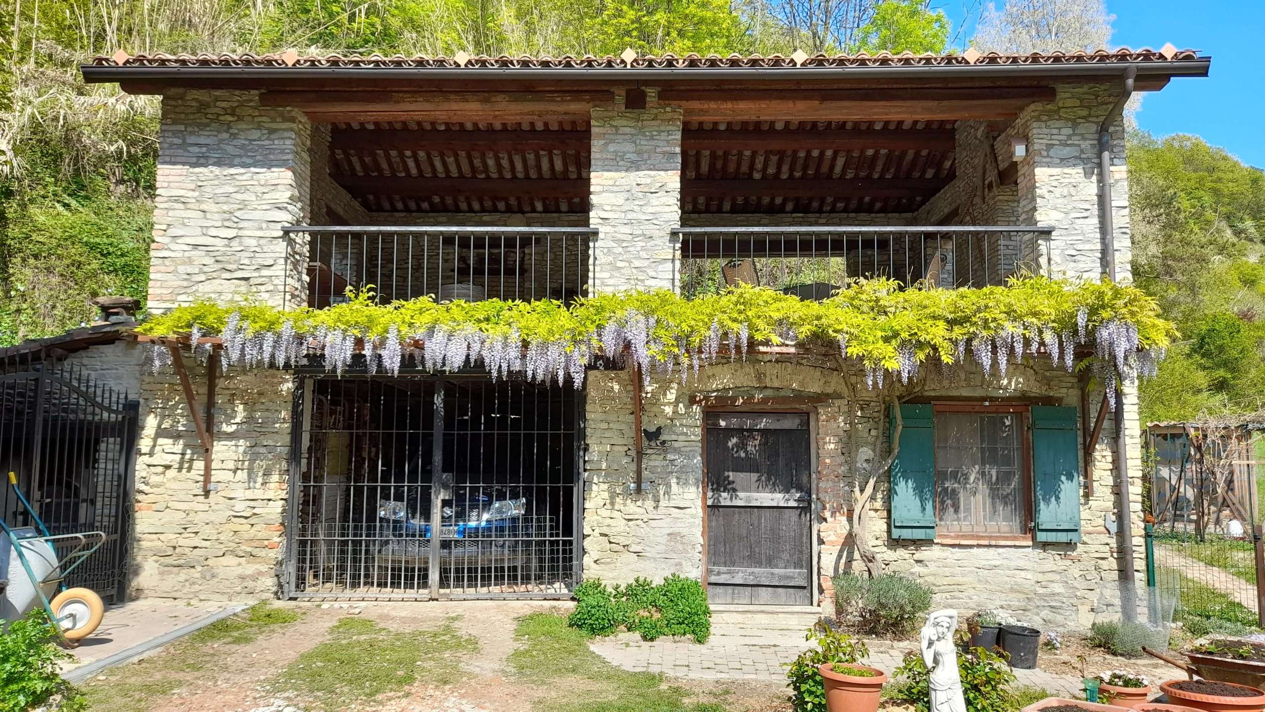In the fienile, there is a secure garage, a shed, and the upper level contains an extensive entertainment area. A 15 year old wisteria grows over the entire front of the fienile and contributes to the coolness of the shed in summer.