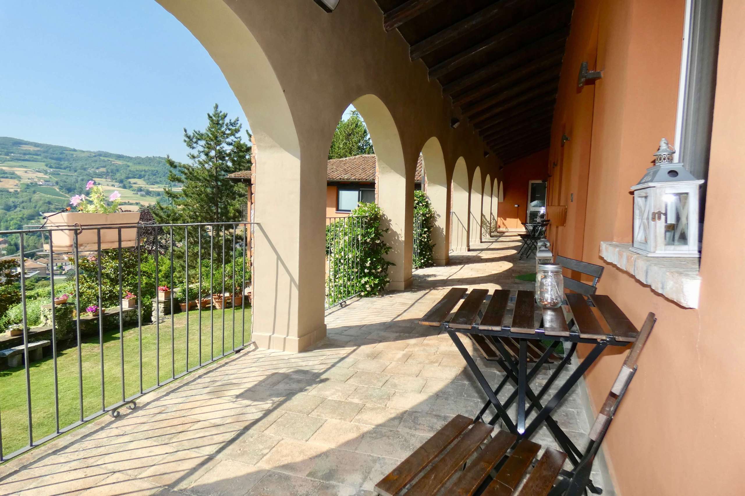 On the heights overlooking the charming medieval village of Monastero Bormida, a splendid stone and brick farmhouse, carefully restored, opens its gates. Access is via a private road with automatic entrance, ensuring both privacy and tranquility.