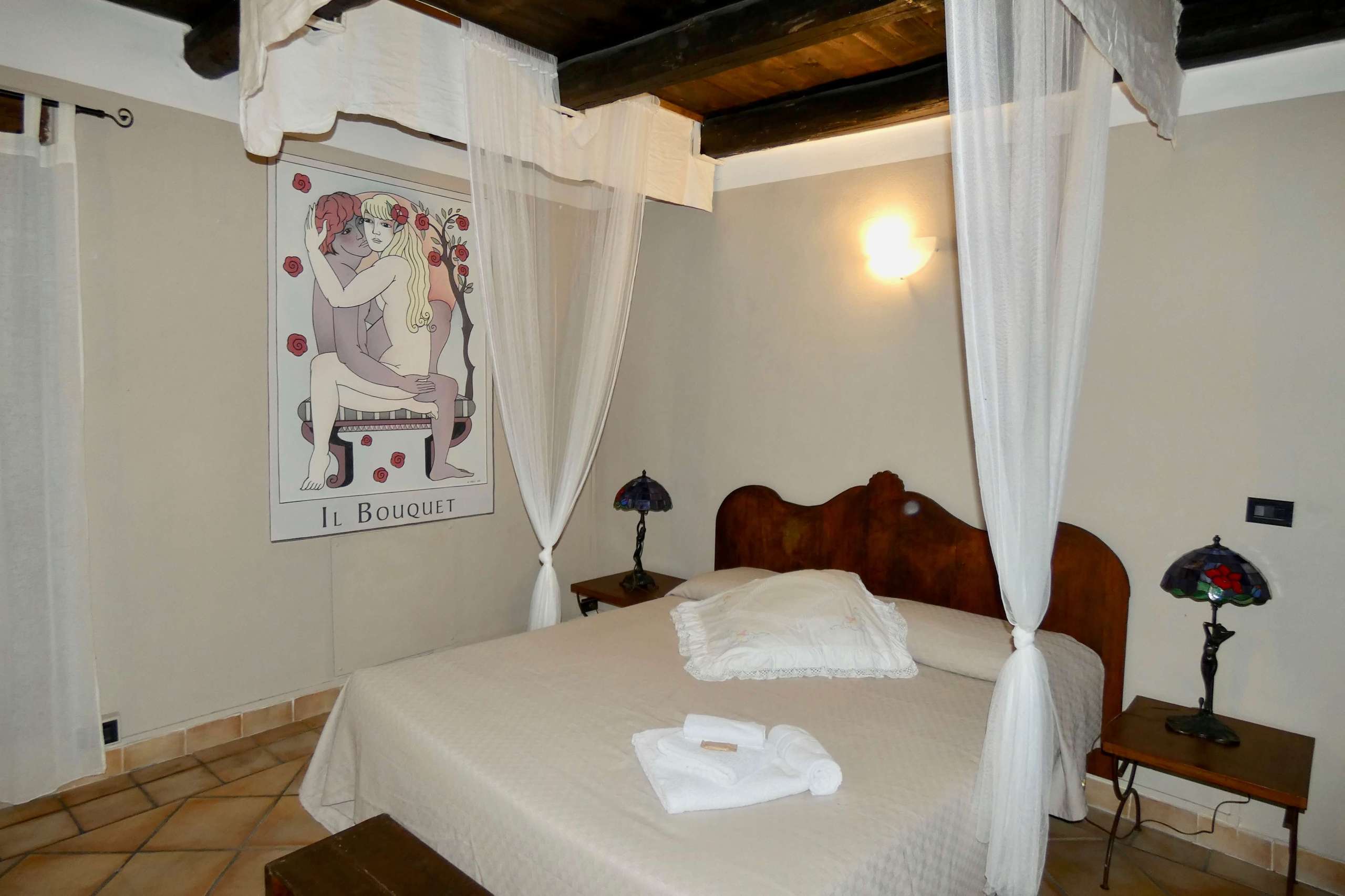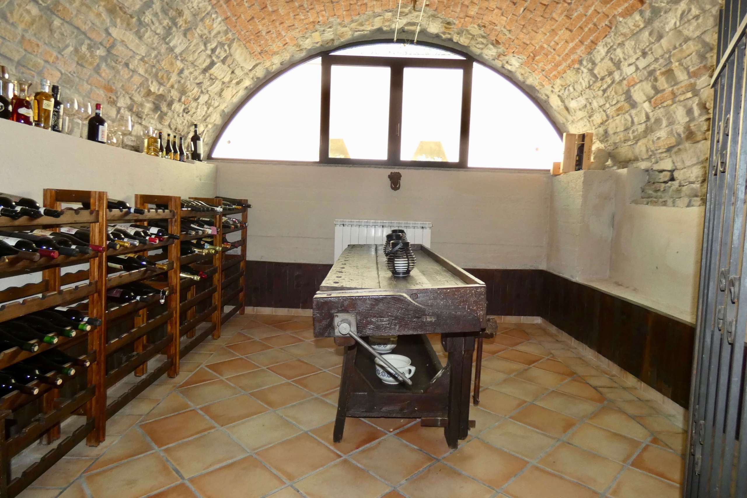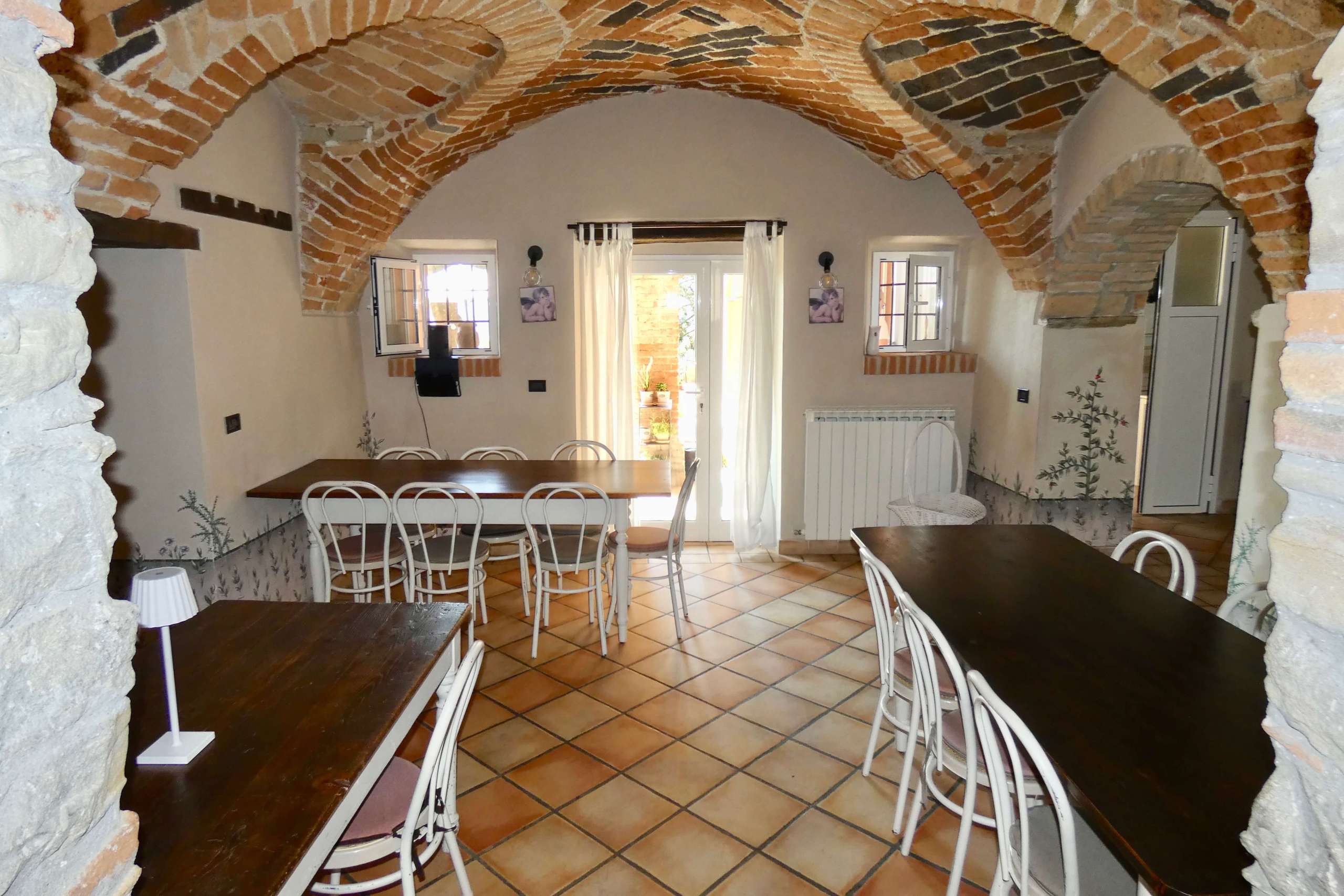 Inside, a spacious living room and a welcoming tavernetta with vaulted brick ceilings create an atmosphere steeped in tradition. From here, a stone staircase descends into the cellar: stone walls and a barrel-vaulted ceiling evoke the timeless charm of Piemonte’s winemaking heritage. The professional kitchen, with direct access to the garden, is ideal for convivial lunches, whether outdoors under the sky or in one of the two elegant dining rooms.