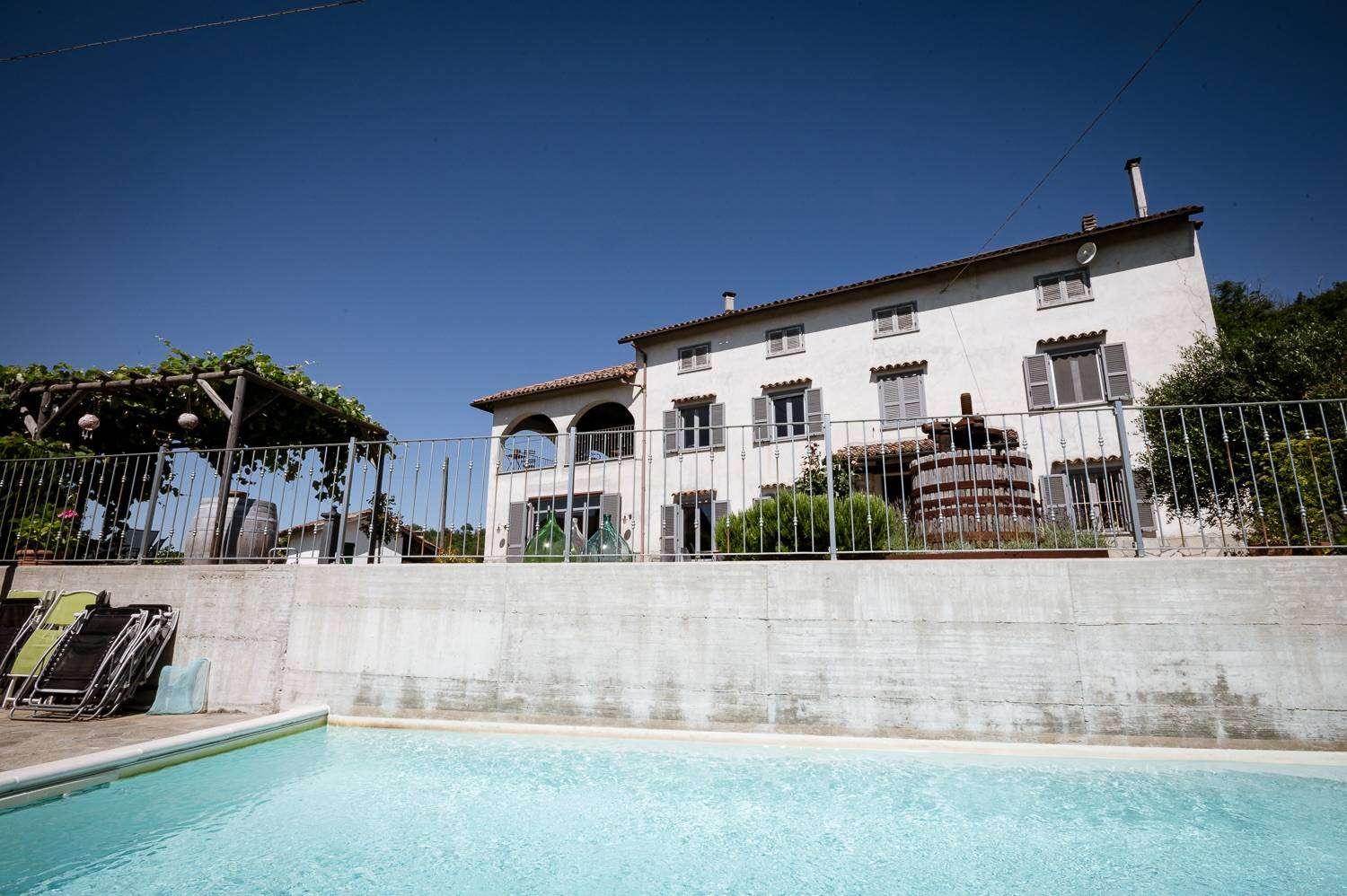 Even the exterior looks like a jewel, all lovingly cared for down to the smallest detail: the pergola to enjoy the shade on hot summer days, the old wine press, the aromatic plants, the lavender and a beautiful, panoramic swimming pool!